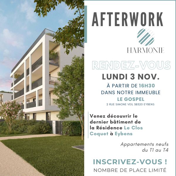 Venez rencontrer nos équipes et découvrir le dernier bâtiment, Harmonie, de la Résidence "Le Clos Coquet" en avant-première à Eybens !